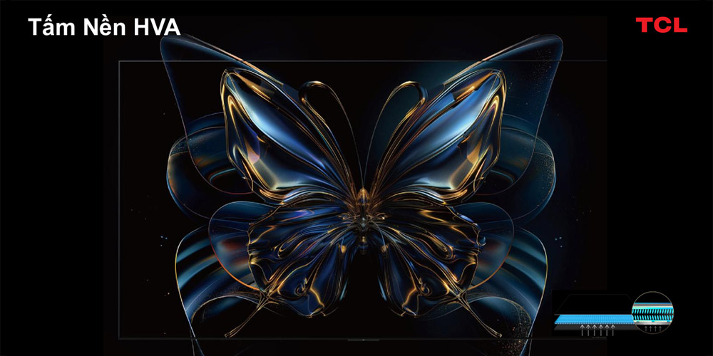 Công nghệ HVA Panel giúp tăng độ tương phản và cho góc nhìn rộng lên đến khoảng 178°, nhờ đó hình ảnh vẫn rõ nét khi xem từ nhiều vị trí khác nhau trong phòng.