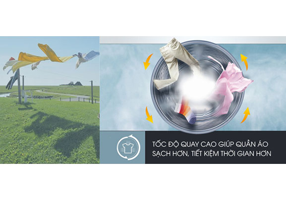 Tốc độ vắt khá cao 1.200 vòng/phút giúp quần áo nhanh chóng khô, rút ngắn thời gian phơi