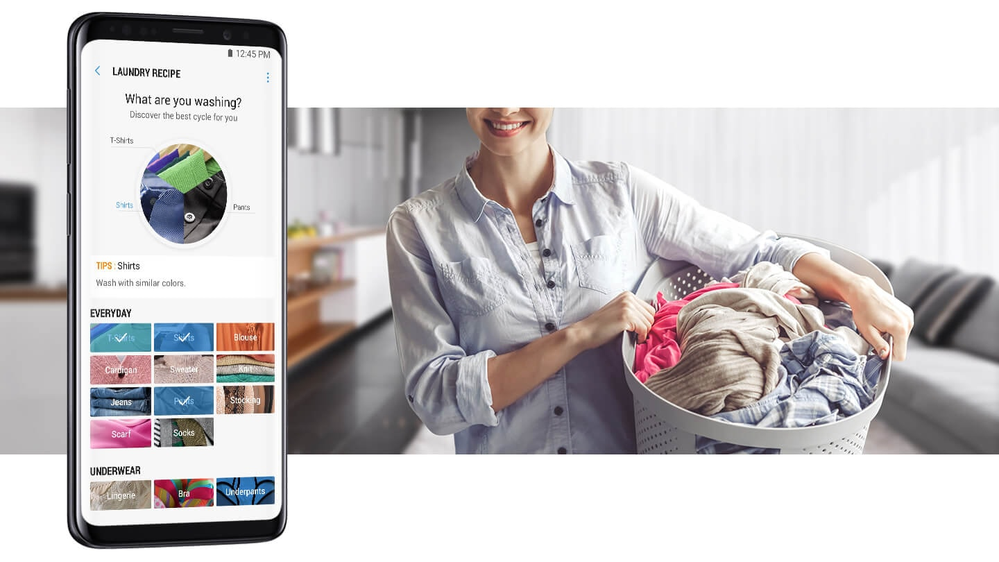 Giặt giũ dễ dàng, tiết kiệm thời gian tối ưu với ứng dụng điều khiển thông minh SmartThings trên điện thoại, giúp tự động nhận biết thói quen sử dụng của chính bạn để tối ưu hiệu năng vận hành.