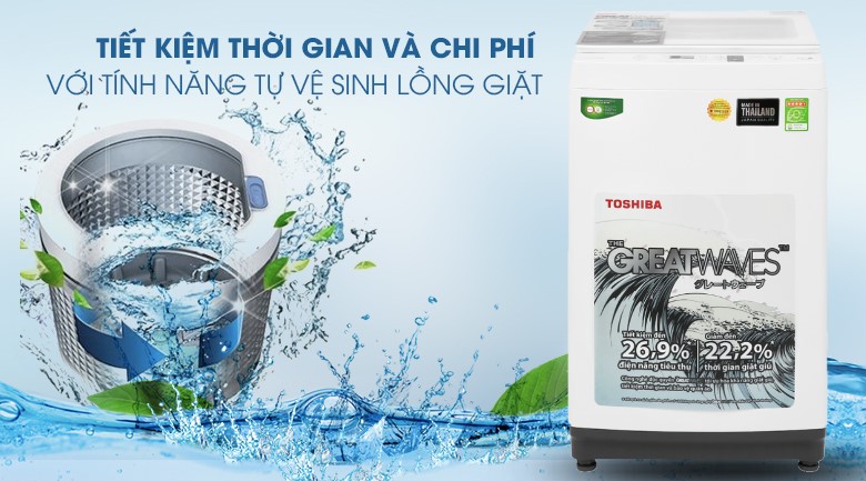 Với tính năng tự vệ sinh lồng giặt, máy giặt sẽ tự động loại bỏ vi khuẩn và cặn bẩn còn sót lại trong lồng giặt giúp tiết kiệm thời gian và chi phí trong việc vệ sinh thường xuyên, kéo dài tuổi thọ của máy.
