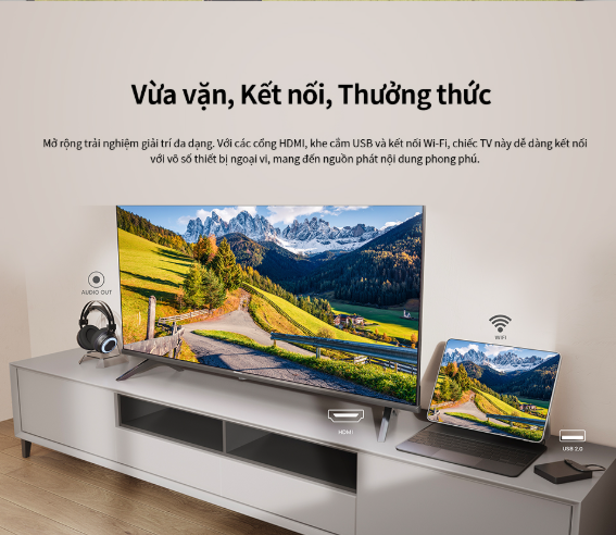 Tivi hỗ trợ nhiều cổng kết nối phổ biến giúp kết nối thiết bị ngoại vi dễ dàng: